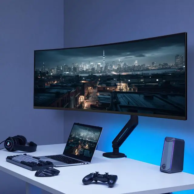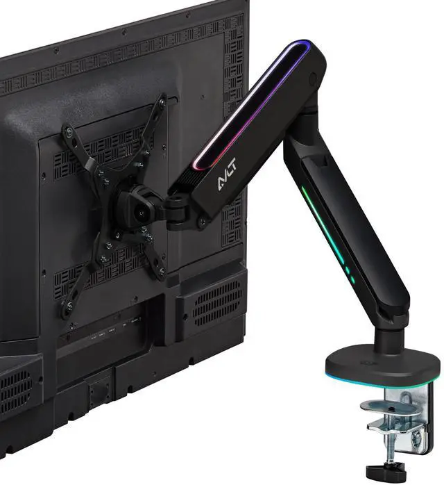 AVLT Single 27"-45" RGB Gaming Monitor Arm Desk Mount Built-in 20 Lighting Modes Touch Button Control Fits Flat/Curved/Ultrawide Monitor Height Swivel Tilt Rotation Adjustable Monitor Stand -Black
