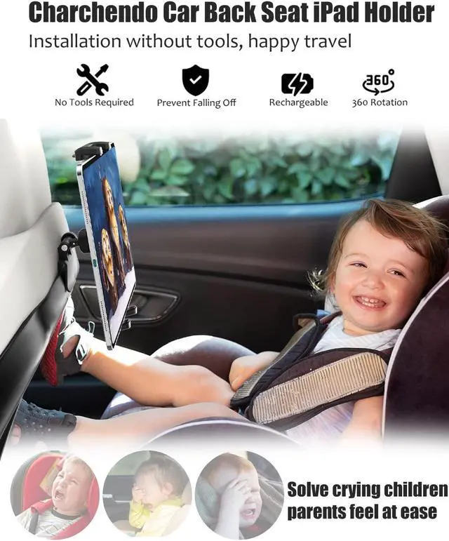 [(Excellent Material)] Back seat tablet mount is made of high-quality ABS material, the ball head has a 360deg adjustment function, and it is made of metal, which is not easy to break and durable. There are silicone pads on both sides of the clip to protect the surface of the electronic dev