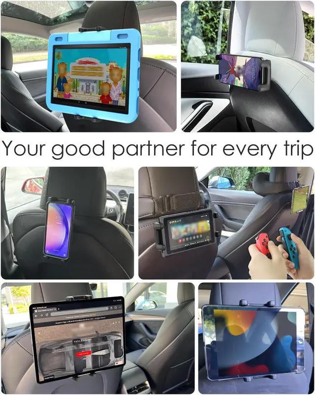 [(Wide Compatibility)] Headrest tablet mount adjustable clip fits all 4-13'' devices. The clip size 4.7-9.64'' (11.93-24.5cm), Thickness 0.7'' (1.8cm), which makes the clip work with or without a case Can hold on tightly. Such as iPad Pro 12.9/11/10.5/9.7", iPad Mini (5, 4, 3, 2, 1), iPad Air (5, 4, 3, 2, 1), iPad (8th 7th 6th 5th), iPad 2019/2020/2021; Switch; Fire HD 10 8 7 kids; iPhone 14/14 Pro/14 Pro Max, 13/13 Pro/13 Pro Max, 12/12 Pro/12 Pro Max; Samsung Galaxy, Google Nexus, HUAWEI ect.