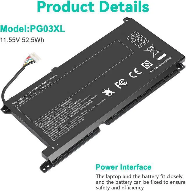Replacement for Part Number: PG03XL, PGO3XL, HSTNN-DB9G, HSTNN-OB1I, L48430-AC1, L48485-005, L48495-005, L48430-AC2 HSTNN-DB9G, L48430-2B1, L48430-2B2, L48430-2C2, L48430-2C1, L48430-272, L48430-271, 3ICP6/60/72.