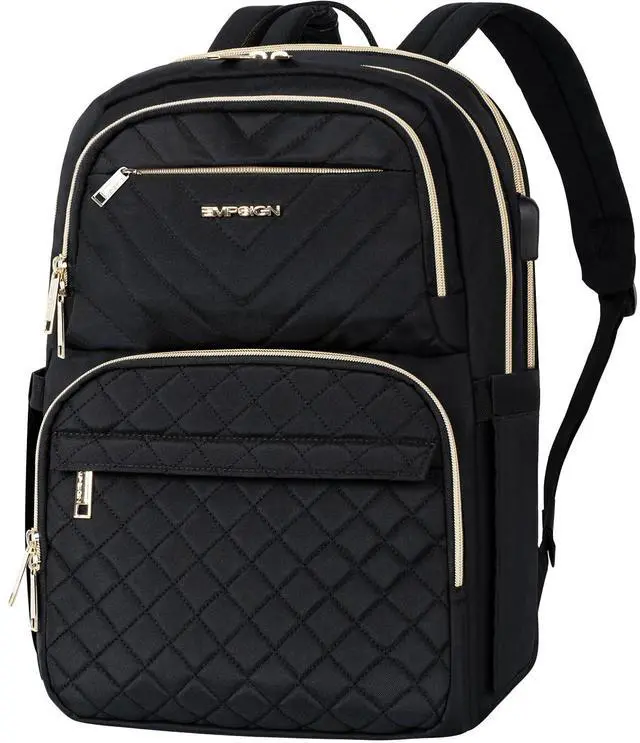 EMPSIGN Laptop Backpack Purse for Women and Men with USB Charging Port, 15.6 Inch Travel Water Resistant Quilted Backpack, High-Capacity 30L Work Business Computer Backpack, Black