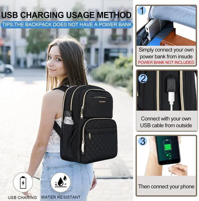 [(Durable and Stylish Women Backpack)] : Empsign laptop work backpack is made of high-quality quilted canvas and durable leather, with waterproof and wear-resistant advantages. The exterior of the backpack adopts quilting technology, high-quality metal lock, and USB interface design, conveying a classic and fashionable appearance and feeling. The stable bottom of the backpack can better carry the backpack.
