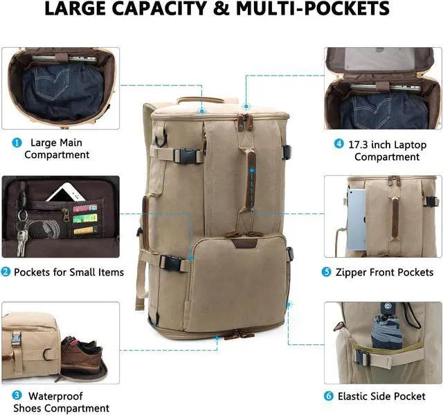 G-FAVOR 40L Travel Backpack, Vintage Canvas Rucksack Convertible Duffel Bag Carry On Backpack Fit for 17.3 Inch Laptop Bag