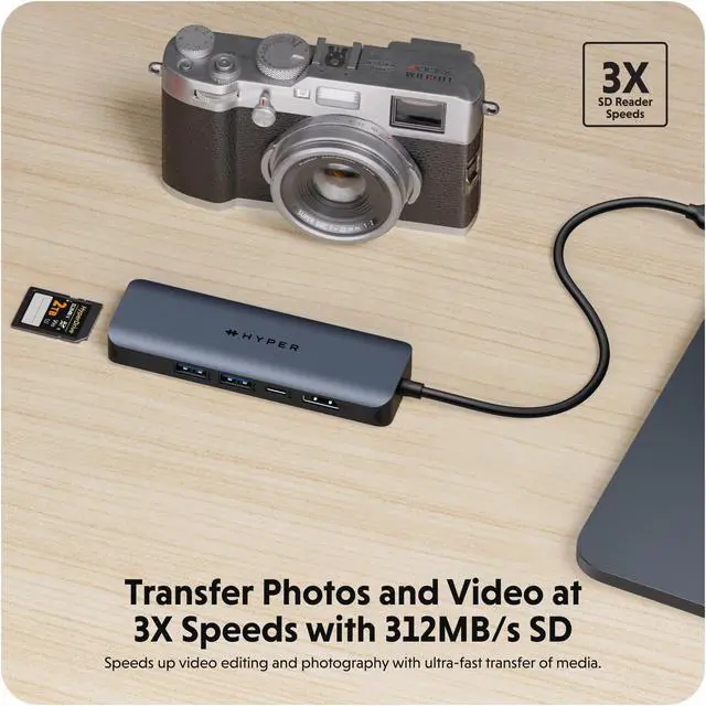 Transfer Photos and Video at 3X Speeds with 312MB/s SD: Provides significant time savings for video editing and photography workflows, as this USB-C hub is a travel gear that allows for ultra-fast and efficient transfer of high-resolution images and videos, enabling seamless editing, quicker file backups, and accelerated pos