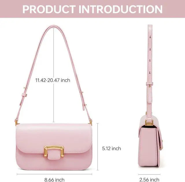 LA FESTIN Small Leather Shoulder Bag for Women - Designer Crossbody Handbag Satchel Purse with Strap for Everyday Use (Pink)