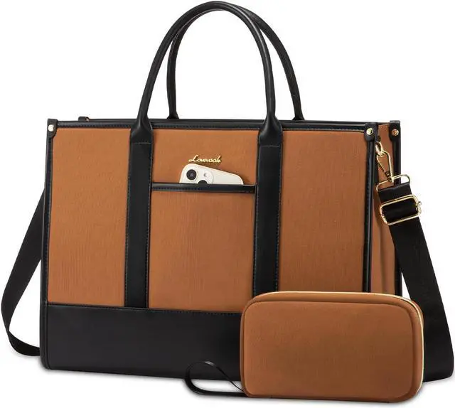 LOVEVOOK Laptop Tote Bags for Women Work Bag 15.6 inch Large Professional Teacher Purse Lightweight Computer Bag Briefcase Business Office, Brown-black