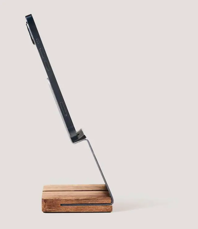 This sleek and sturdy tablet stand is the perfect accessory for your video calls, conferences, and everyday device usage. Crafted with precision from solid American walnut wood and space-grade aluminum, it boasts a Scandinavian-inspired design with curved edges for a harmless touch. The anthracite finish adds a touch of sophistication, while the anti-slip surface keeps your device securely in place. Accommodating screens up to 12 inches, this stand allows for comfortable viewing and easy access to charging ports and audio jacks. Its compact size ( 7.3 inches long and 1.5 inches wide) and lightweight construction make it a portable companion for your workspace or on-the-go needs.