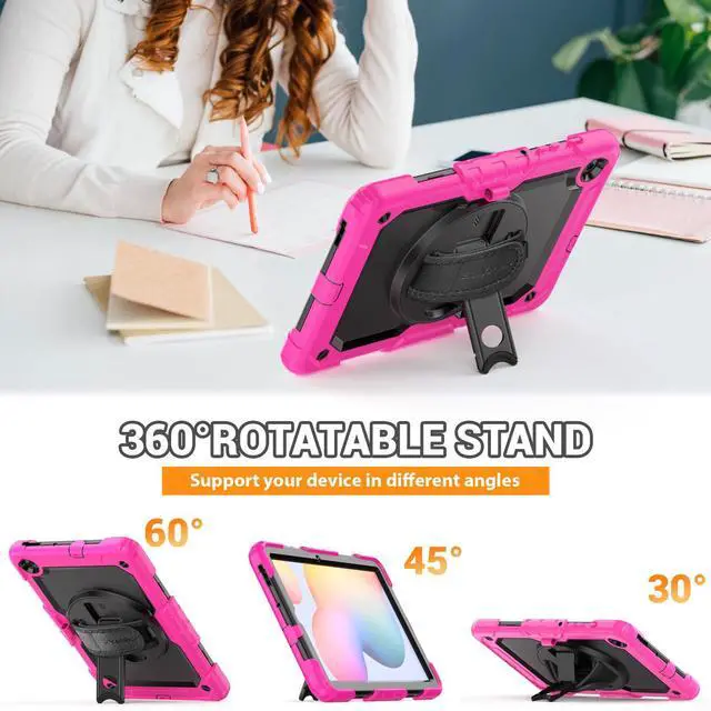 SEYMAC Case for Samsung Galaxy Tab S6 Lite 10.4 '' 2024/2022/2020 (SM-P620/P610/P615), Heavy Duty Full-Body Shockproof Protective Case with Screen Protector, Rotating Stand, Hand/Shoulder Strap, Pink