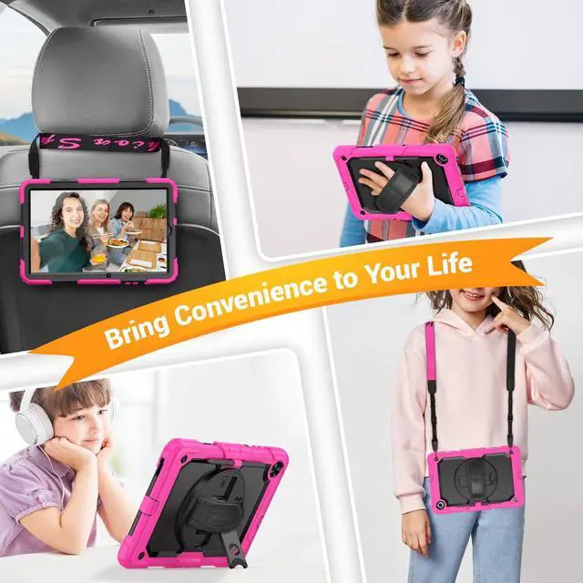Hand and Shoulder Strap: With the adjustable handle on the back, you can hold your tablet securely with single hand; the detachable shoulder strap make it easy for children to carry the tablet, it also could hang behind the car seat for ent