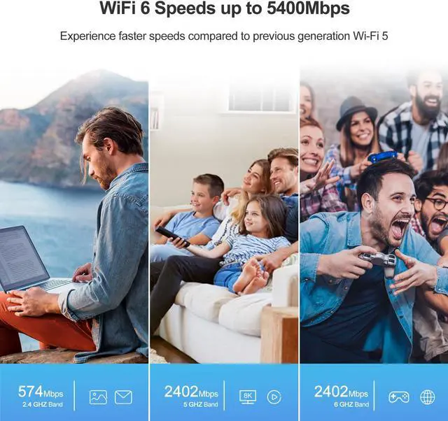 [(Tri Frequency Without Delay)] :TODAAIR WiFi adapter supports three bands of 2.4GHz/574, 5GHz/2402Mbps and 6GHz/2402Mbps, making it easy to connect multiple devices at the same time, ensuring a stable and latency-free wireless network experience.
