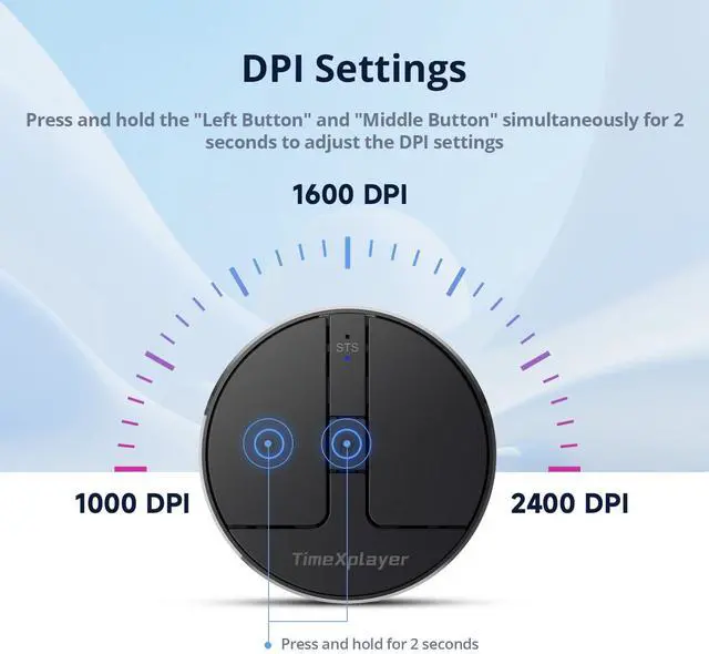 TIMEXPLAYER Stylish Mini Round Mouse with Pressure Sensing Reel, Ultra Portable Wireless Mouse Connectivity: Wired, 2.4G and Dual Bluetooth, Rubber Case Included (BT1/BT2-Silver)