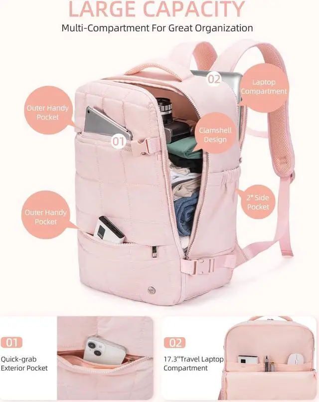 WESTBRONCO Travel Laptop Backpack for women 17.3 inch Travel Backpack Carry on Flight Approved Puffy Travel Weekender Bags for Women with Shoes Bag & Cosmetic Bag