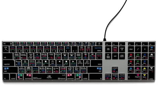 Accelerate your DaVinci Resolve workflow with our intuitive keyboard, equipped with color-coded shortcuts for seamless navigation through editing, color grading, and visual effects tasks. ^^ Transform your MacBook into a professional editing workstation with our DaVinci Resolve editing keyboard, offering a seamless user experience for both beginners and experienced editors. ^^ Precision at