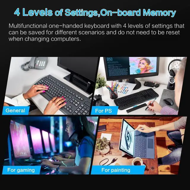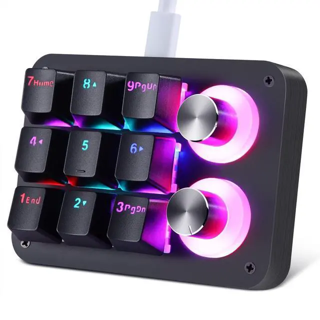 Wide ApplicationsThis one handed keyboard is a huge time saver, you can do programming for a living, for office works, for play gaming, for music, media, industrial control, laboratory, production line testing and other fields. It is easy and quick way to control scenes without needing to move a mouse around. You can use a lot of keyboard shortcuts all day, and you can program each key to be 1 key or a macro of key combinations. ^^ 9 Key Programmable Keyboard with Unique KnobAll keys are programmable.