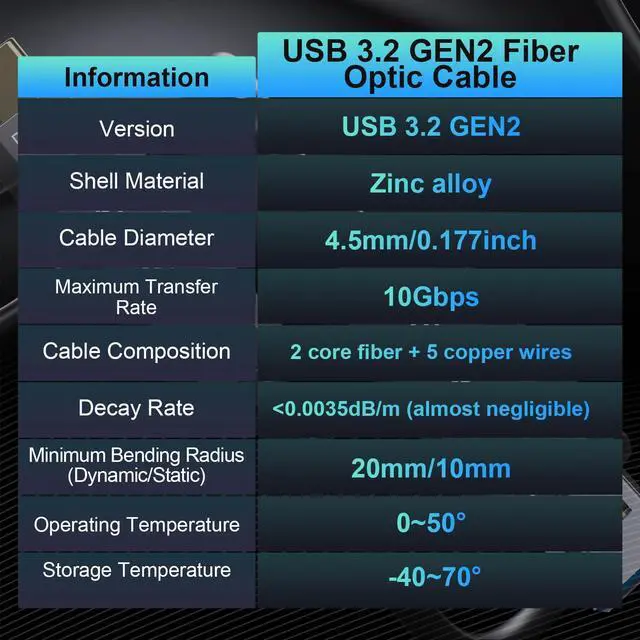 10Gbps High Speed Data Transfer: Experience breathtaking speeds with fibbr fiber optic USB A to USB C cable, featuring 10Gbps USB 3.1 Gen 2 technology,and ensuring zero data loss even over long distances up to 100ft. Perfect for high-speed tasks and heavy data use!