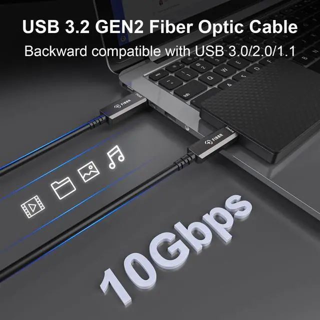 Fiber optical USB A to USB C cable 50ft / 15m