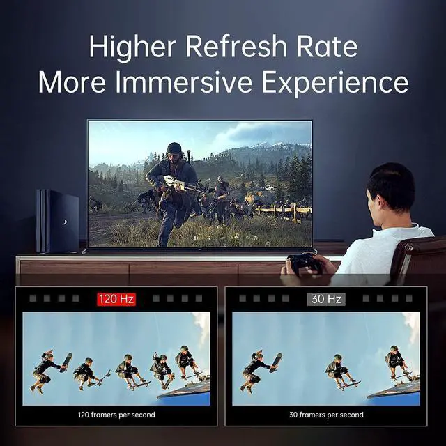 Combined with the photoelectric conversion engine chip, the performance of HDMI is greatly improved, so that it has 100% true 8K quality. ^^ Support the high-bitrate audio formats up to192kHz, 24-bit, and uncompressed 5.1 and 7.1, Dolby specific lossless audio formats, and 32-channel uncompressed audio. High-speed HDMI cable compatible with all HDTVS, Blu-ray Player, Xbox Series X, PS4/5, HDMI Splitter TV etc. ^^ The best gaming cable with features like Variable Refresh Rate (VRR), Self-Detect, ALLM (Auto Low Latency Mode), QMS (Quick Media Switching), and QFT (Quick Frame Transfer).