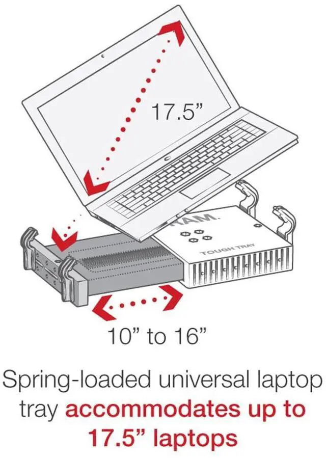 Dual articulating swing arm allows for ideal placement; universal laptop tray accommodates most laptops
