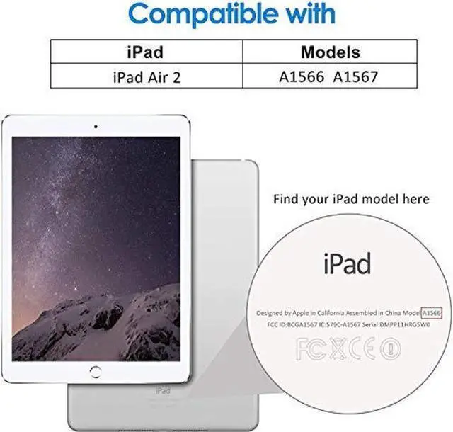 Compatibility: This Shockproof iPad Air 2nd Gen Case 9.7 inch only fit for (Model : A1566, A1567) 2014 Release, NOT FITS for other models, Please check iPad model number at the bottom of the back of your tablet before purchase. (Notice: Without Screen Protector)