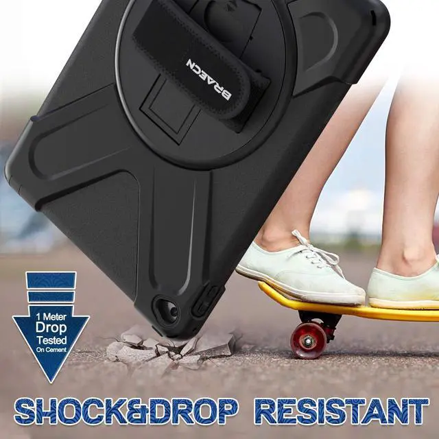 BRAECNstock for Apple iPad Air 2 (2nd Generation) Case 9.7 inch 2014 Shockproof Protective iPad Air 2 Covers and Cases with Pencil Holder, Rotating Stand+Hand Strap, Shoulder Strap, Black