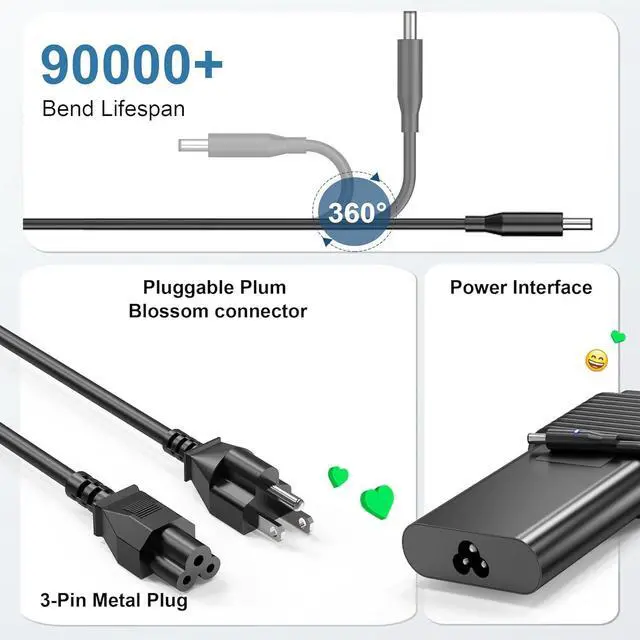 What you can get: 1*130W Dell laptop charger,1*9FT Charging Cable,24-hour friendly support service, 30-day money-back guarantee, 12-Month warranty