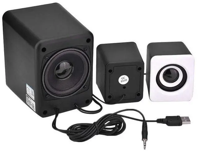 This is a professional speaker with superior sound quaility, composed of 1 main speaker and 2 side speakers. This speaker will let out a steady and undistorted bass sound. And you can adjust the volume, bass and treble by rotating the knobs, this speaker will create different when playing different kinds of music. It may be a companion for your cellphone, tablet, laptop, or desktop PC!