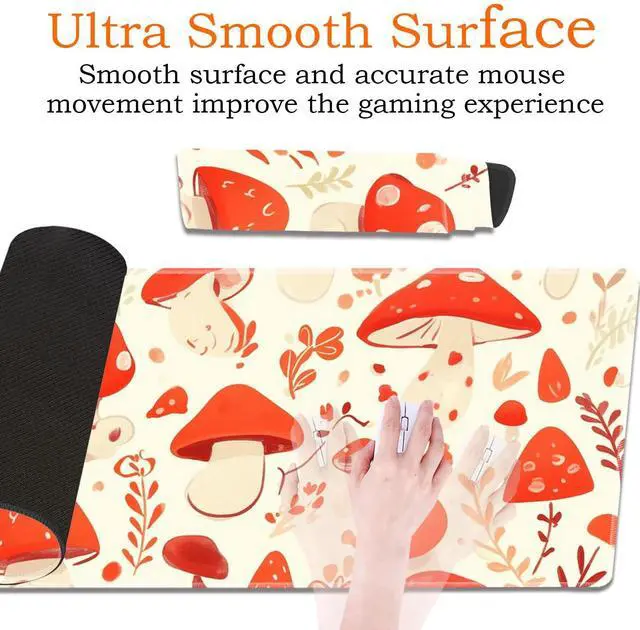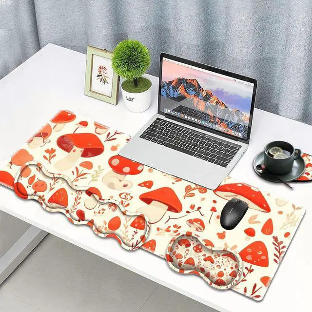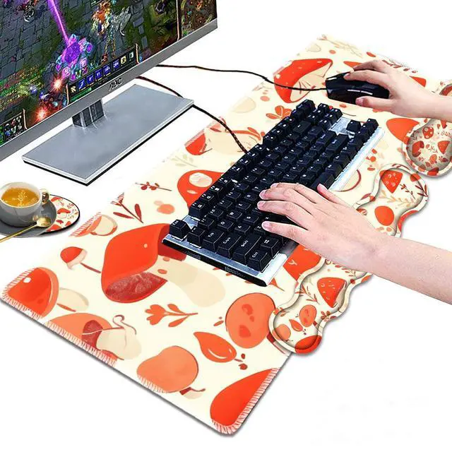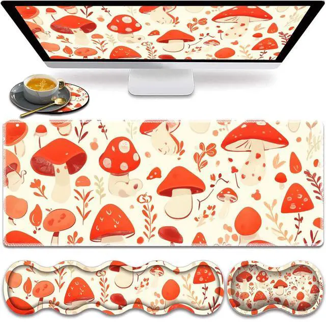 Large Gaming Mouse Pad, Keyboard Wrist Rest Pad + Mouse Wrist Pad + Coaster 4 in 1 Set, Extended Waterproof Non-Slip Desk Mat, Suitable for Office Home Learning Games, Sewant Mushrooms