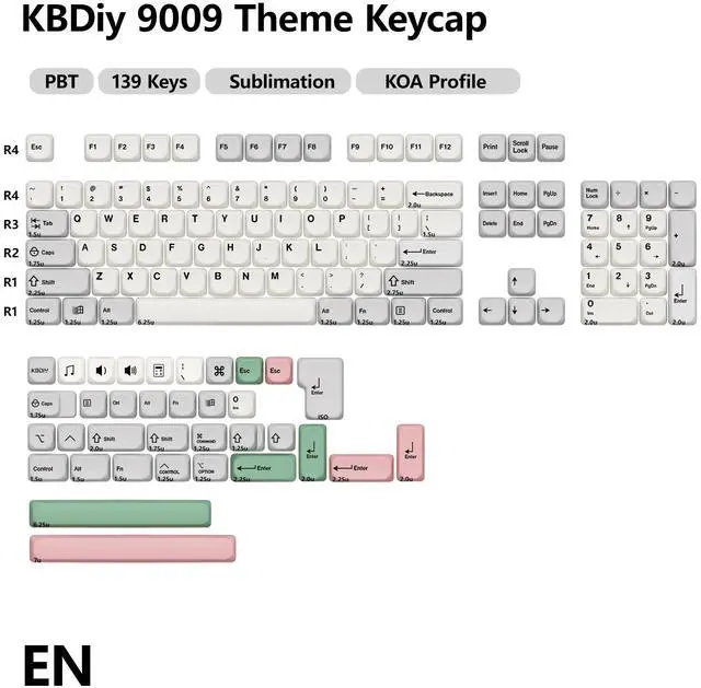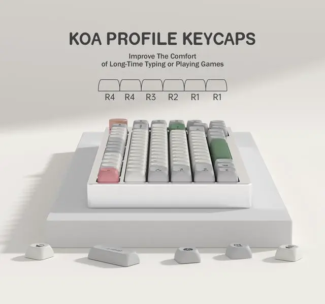 KBDiy KOA Profile-KOA Profile similar to MOA Profile ,Ergonomic Arc layout, concave arc, fingers contact the keycaps in a larger area, the touch is smoother, making you feel more comfortable when using
