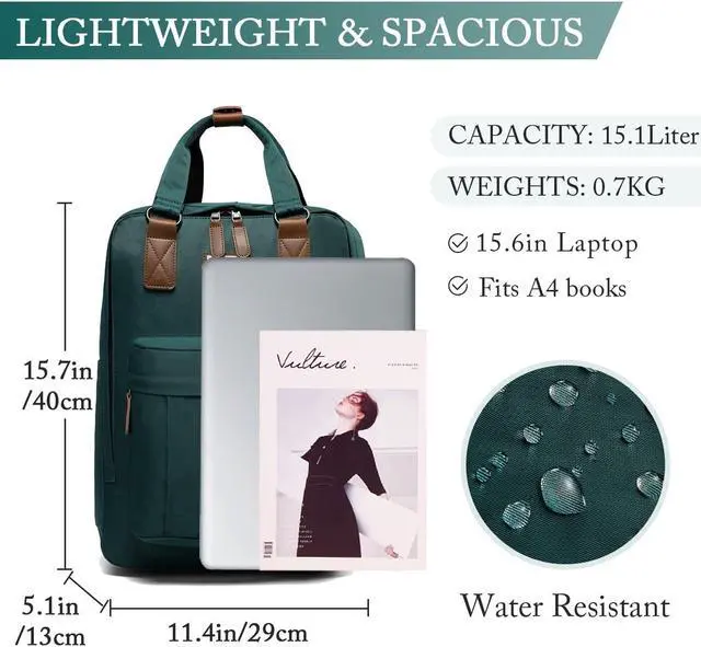 VINTAGE DESIGN:The Vaschy laptop backpack is made of high quality water resistant fabric,which is soft and durable.The vintage school backpack features a rectangle and streamlined design with adjustable shoulder straps for a better overall fit. The two top handles for hand toting the backpack makes it more convenient and comfortable to carry.