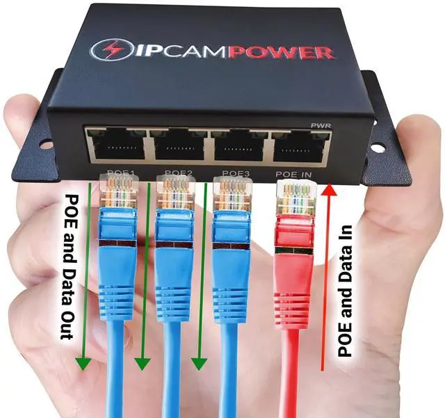 Port Unmanaged Switch: This device will take an incoming POE power source to be powered and act as a standard 3 Port POE switch. Has 1 port in and 3 Ports out. Useful if you want to take an incoming POE signal sent through one cable and be split out to power 2 cameras at once. Can also be used as a switch for non-POE devices as well. This device requires no local power and does not need a receptable nearby. The only way it is powered is by the incoming POE power from your POE switch or injector. It is also gigabit rated for fast data transfer speeds.