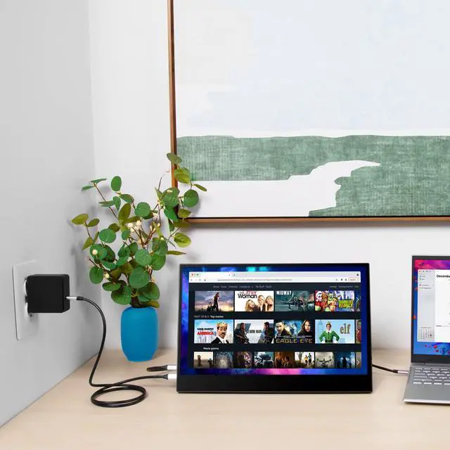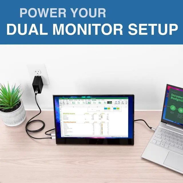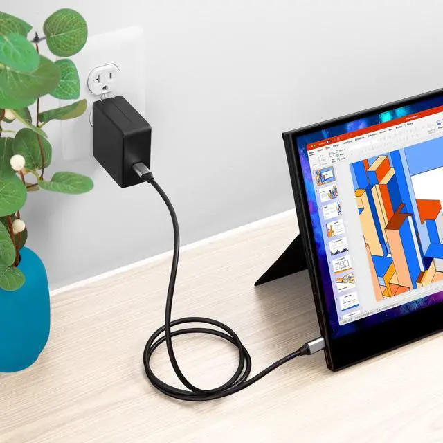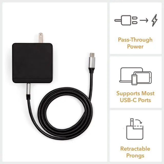 Conveniently power up your device with this 45W USB-C wall power adapter. P lugs into any standard outlet or power strip and has a USB-C to USB-C 5ft cable. Provides supplemental power to your monitor USB-C to USB-C cable included Transfers both power and data Compatible with laptops, monitors, phones, and tablets 45W power charge