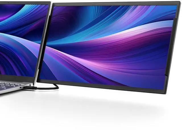 Large Screen for Enhanced Productivity Designed to match your 15" laptop, the 15.6" FHD TFT display provides immersive visuals with ultra-thin bezels. Use the integrated kickstand to transition the laptop screen extender to freestanding mode, which is ideal for horizontal and vertical monitor configurations.