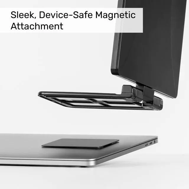 ^^ Broad Compatibility with Hub Connectivity These laptop monitor extenders are compatible with Mac, PC, and Chrome OS, with no downloads or drivers required. The ribbed aluminum hub minimizes the need for multiple cords, allowing your triple-screen setup to run with just one USB-C Thunderbolt port and two USB-C connections. Supplemental power may be needed to power both monitors. ^^ Attachable with Secure, Sleek Design Each screen extender portable laptop attaches securely to your laptop with a device-safe magnetic plate, maintaining a professional aesthetic. When traveling, close one monitor onto the back of your laptop and carry the second monitor separately for easy mobility.