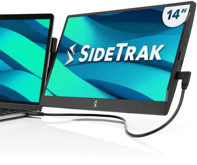 The small mounting plate ensures a sleek, lightweight design, maintaining your laptop's aesthetic without adding bulk or a cumbersome attachment. ^^ Portable and Compact for On-the-Go Productivity The SideTrak Swivel 14" folds easily into a compact design, so you can take your screen extender portable laptop wherever you work without added bulk. This travel monitor for laptops boosts productivity on the go. ^^ Broad Compatibility with Easy Connection Connects via USB-C or USB-A and Mini HDMI, requiring no external power. This portable monitor for laptop works with Windows, Mac, and Chrome OS, with no additional drivers required.