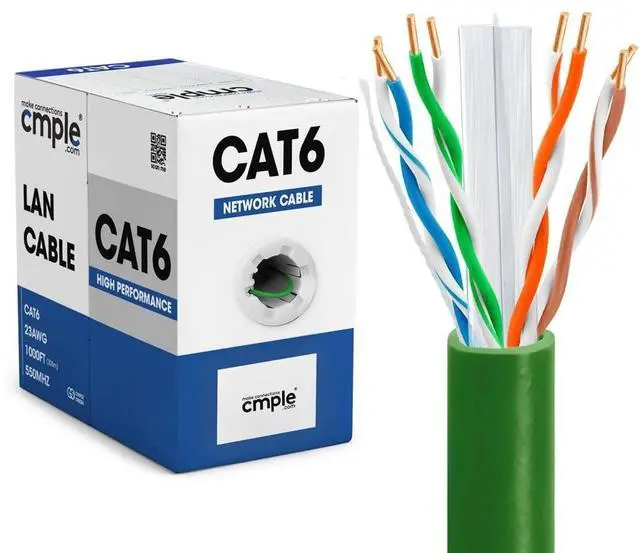 It's built for incredible durability, ensuring a reliable and long-lasting network connection. ^^ Spool Cable Box - Experience smooth packaging with this easy-to-handle Cat6 Wire, clearly marked by foot. Plus, benefit from our commitment to long-term quality assurance for your peace of mind. ^^ 1000 ft Cat 6 Ethernet Cable is a CMR UTP Bulk Wire, 550 MHz - Green. Also available in White, Black, Blue, and Yellow colors.