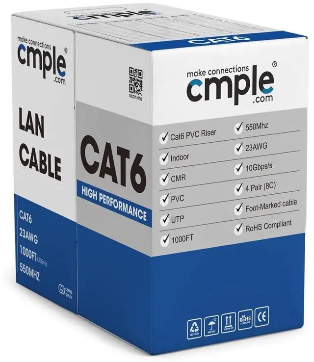 Cat6 Ethernet Cable is ideal for a wide range of networking applications, from home or office network installations to routers, printers, VoIP phones, IP cameras, gaming consoles, Ethernet extenders, switch boxes, PoE devices, Routers and more. ^^ Lan Cable with a solid 23AWG CCA conductor, this 1000ft Cat6 Cord provides the fastest and most reliable internet connection between two network devices, supporting bandwidth of up to 10Gbps/s. ^^ Cat 6 Cable built to last, this bulk Ethernet cable comes wrapped in a high-quality PVC jacket that can withstand high levels of stress, pulling, and pushing.