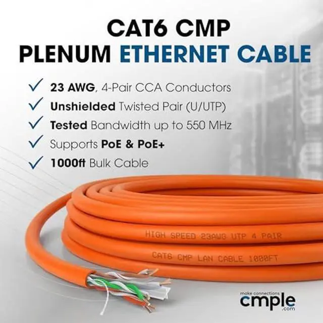 Package Includes: 1000 Feet Cat6 Ethernet Cable is a CMP UTP Bulk Wire, 550 MHz - Orange