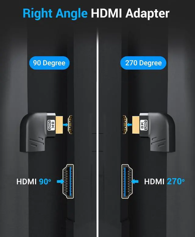 CONNECTORS: BlueRigger 90 degree & 270 degree HDMI adapters offer a right and left angled L shaped design, making them easy to plug behind your HDTV or on the side of your laptop. The HDMI elbow 90 degree adapter ensures a secure connection of HDMI cables without causing damage from bending ^^