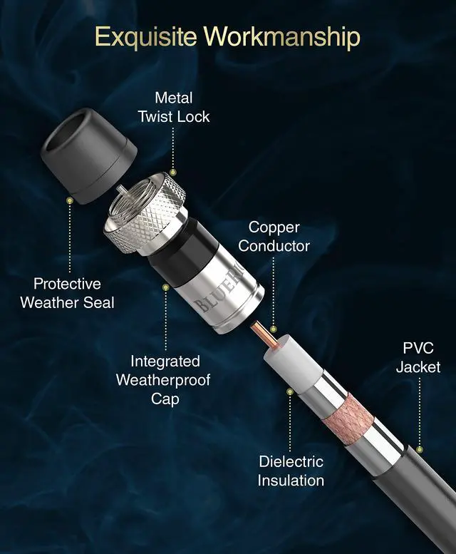 DURABLE CONSTRUCTION: 100% pure copper core for high frequency range to cover 2.3MH z to 3.0GH z and corrosion resistant nickel-plated connectors minimize EMI & RFI interference. Each connector has integrated rubber boot that ensures reliable and clear signal ^^