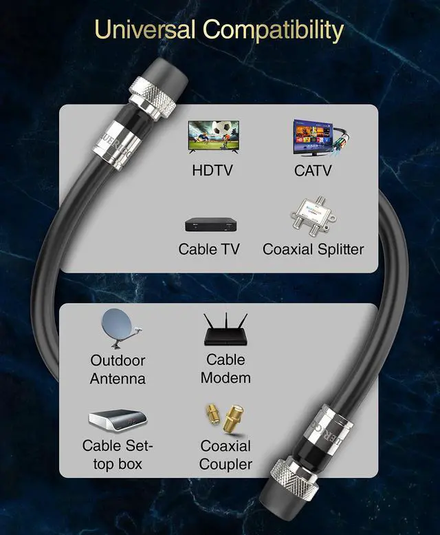 UNIVERSAL COMPATIBILITY: BlueRigger coax cable cord is compatible with HDTV, Home Theater, Cable Modem, Router, CATV, Satellite Receivers, Cable Box, VCR, Broadband Internet and more ^^