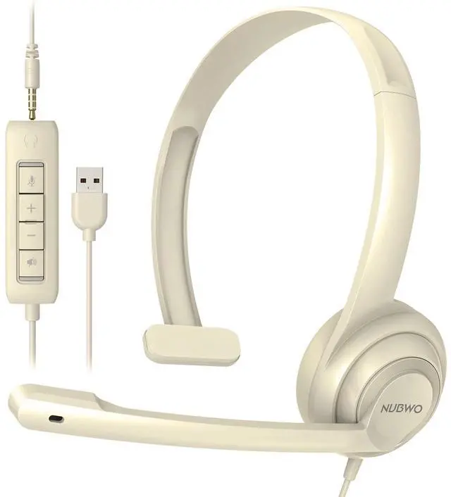 NUBWO PC Headset with Noise Cancelling Mic, 3.5 mm/USB Computer Headset with Detachable surround sound Vol. /Mute USB Control, On-Ear Wire VoIP Headsets for casual gaming, e-learning and music ^^ The adjustable boom mic minimizes background noise for clear communication on popular platforms like MS Teams, Skype, Zoom, and more ^^ Enhanced Audio, With the enhanced Digital Signal sound card in the control box, NUBWO computer headset provides clear, natural, and rich audio; Whether youre on a video call or listening to music in the busiest open workspaces, you can hear clearly ^^ Noise Canceling Mic, The adjustable boom mic could minimize unwanted background noise like keyboard clicks, nearby talkers for clear and natural calls on most leading platforms, including MS Teams, Skype, zoom, etc ^^ Simple LightWeight Design, At just 60 grams, making it good for all-day use, long conference calls and listening to multimedia
