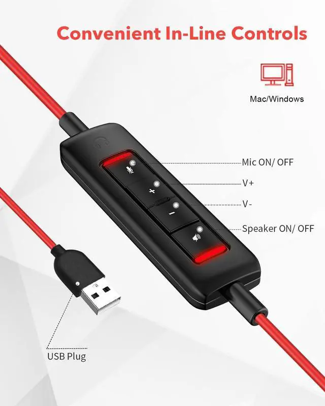 NUBWO PC Headset with Mic, USB Computer Headset with Detachable surround sound Vol./Mute USB Control, On-Ear Wire VoIP Headsets for casual gaming, e-learning and music