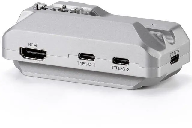 Both ports can be utilized simultaneously, providing unmatched convenience and efficiency. It features an HDMI port for easy video signal output to an external monitor or wireless transmitter. Experience crystal-clear video quality and streamline your live view on set. In addition to its versatile connectivity, the hub includes a 3.5 mm audio port. This allows for real-time audio monitoring when recording, ensuring precise sound capture for your projects. At the bottom of the USB-C Hub lies an integrated ARCA Quick Release Plate. This innovative design makes it ideal for mounting the Khronos Hub to tripods or gimbals with ease.