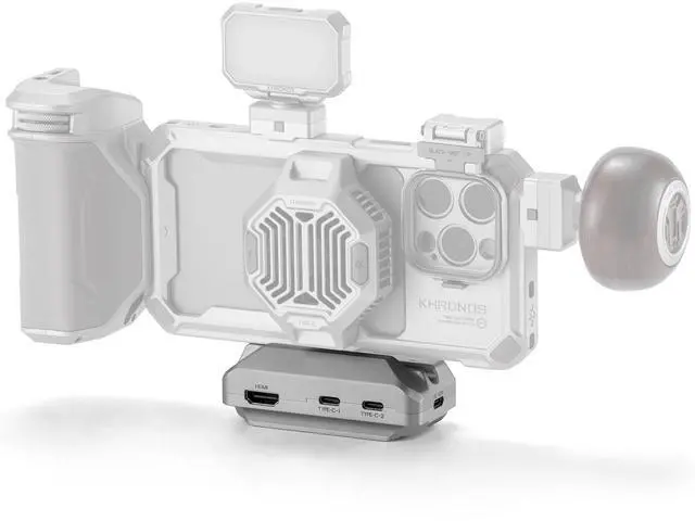 Introducing Khronos Quick Release USB-C Hub Unleash the full potential and compatible with your iPhone rig with the Khronos Quick Release USB-C Hub. This all-in-one media hub allows you to connect and compatible with your iPhone via USB-C, providing an array of expanded options for seamless integration with external devices. With 2 Type-C ports, the Khronos Hub offers unparalleled versatility. Use these ports for running power to your devices or for high-speed data transmission. Connect external SSD drives effortlessly, which is essential for recording and compatible with Apple Log and ensuring smooth, uninterrupted workflows.