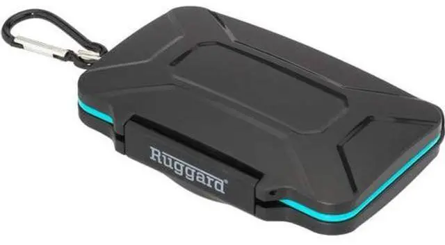 Store, protect, and transport your valuable image files in this black Leda Memory Card Case from Ruggard. The case holds 12 SD & 12 microSD cards and has a molded-rubber lining, a polycarbonate exterior shell, and a snap closure. Carry the case with the molded eyelet and included carabiner. Molded Rubber LiningThe protective molded-rubber lining provides a secure custom fit for each memory card and prevents cards from bouncing aroundPolycarbonate CaseThe rigid polycarbonate construction is lightweight and strong to provide impact and crush protectionSnap ClosureThe snap closure provides a weatherproof seal and closes with an audible click so you know it's securely closedMolded EyeletThe molded eyelet provides a secure connection point for a strap, hook, or carabinerRuggard