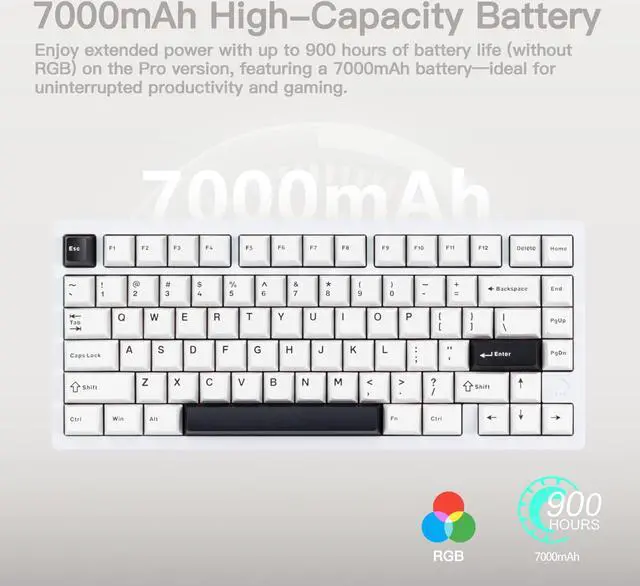 KEEBMONKEY WOBKEY Rainy 75 CNC Aluminum HMX/JWK/Cocoa Switches Triple-Mode Connectivity Mechanical Keyboard with Superior Acoustics, RGB/FR4/Silver SUS304/7000mAh/Cocoa Switch (Pro - Luna)