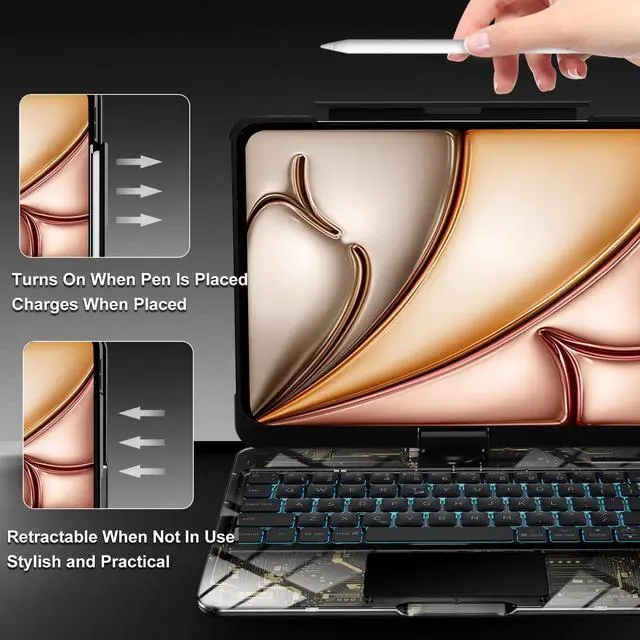 [(Durable, Lightweight Build with Pencil Support)] Includes a magnetic pencil holder for secure storage and wireless charging. Its durable yet lightweight construction ensures dependable protection and portability.