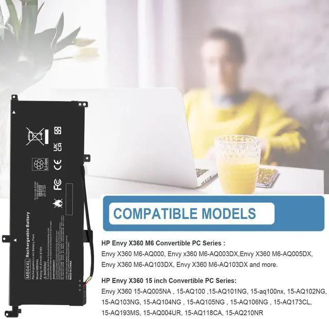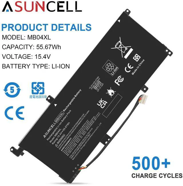 [(MB04XL Battery for HP)] : Type: Li-Polymer; Voltage: 15.4V; Capacity: 55.67Wh; Cell:4-Cell. 100% brand new. Up to 500 recharge cycles over the life of the battery.