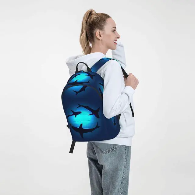 FeHuew 16 inch backpack Sea Animals Shark Laptop Backpack Full Print School Bookbag Shoulder Bag for Travel Hiking Camping Daypack