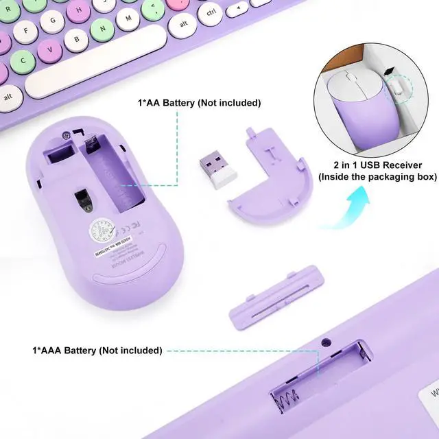 [2.4G Wirless Connection Plug and Play Wireless Keyboard and Mouse Combo] The one 2.4GHz USB receiver can connect both the mouse and keyboard to your computer at the same time without any drivers and software, plug and play. 2.4GHz wireless connection distance can reach 30 meters(98 feet) without delay and disconnect, it can also keep your desk tidy without messy wires (Note: The USB receiver stuck in the cardboard packaging beside the mouse. The keyboard and mouse share one receiver.)